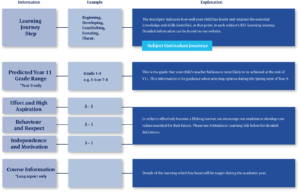 Your resilience and confidence are improving and you can sometimes tackle a more difficult problem. You do ask for help when you are stuck which is good. Most of your work is completed to a satisfactory standard, but it is not always your very best. You occasionally show that you have high aspirations for yourself through your work.